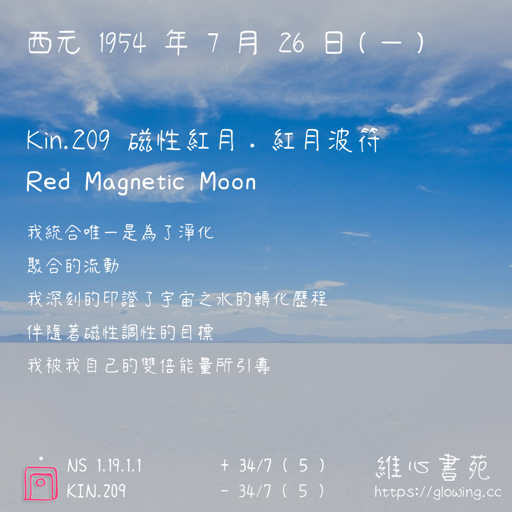 我們可以稱 KIN 209 為 【磁性紅月】 、 【磁性的紅月】 、 【紅月波符 之 磁性紅月】 也可以是 【磁性紅月.紅月波符】 ,你比較喜歡哪一個稱號呢?