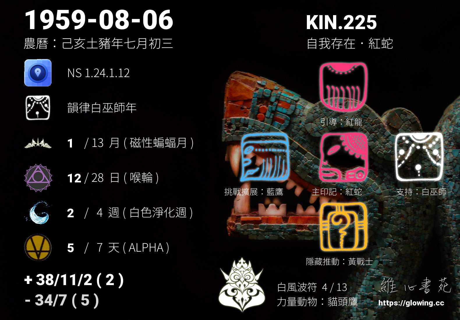 KIN.225 位於 白風波符 13 天中的第 4 天,銀河音階為調性 4